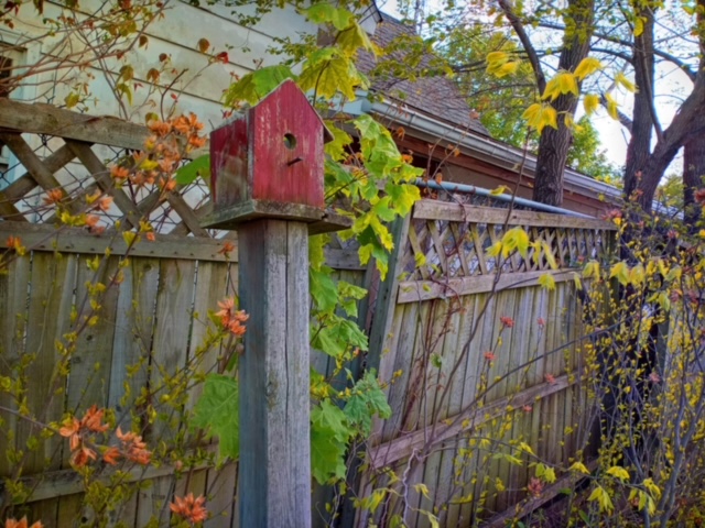 I jokingly said I would write another piece, which I might title “The New Neighbors Next to the New Neighbors,” but after some more word play, I really did come up with another piece, which I titled “Two Rooms and a Birdbath, Needs a Little TLC”: